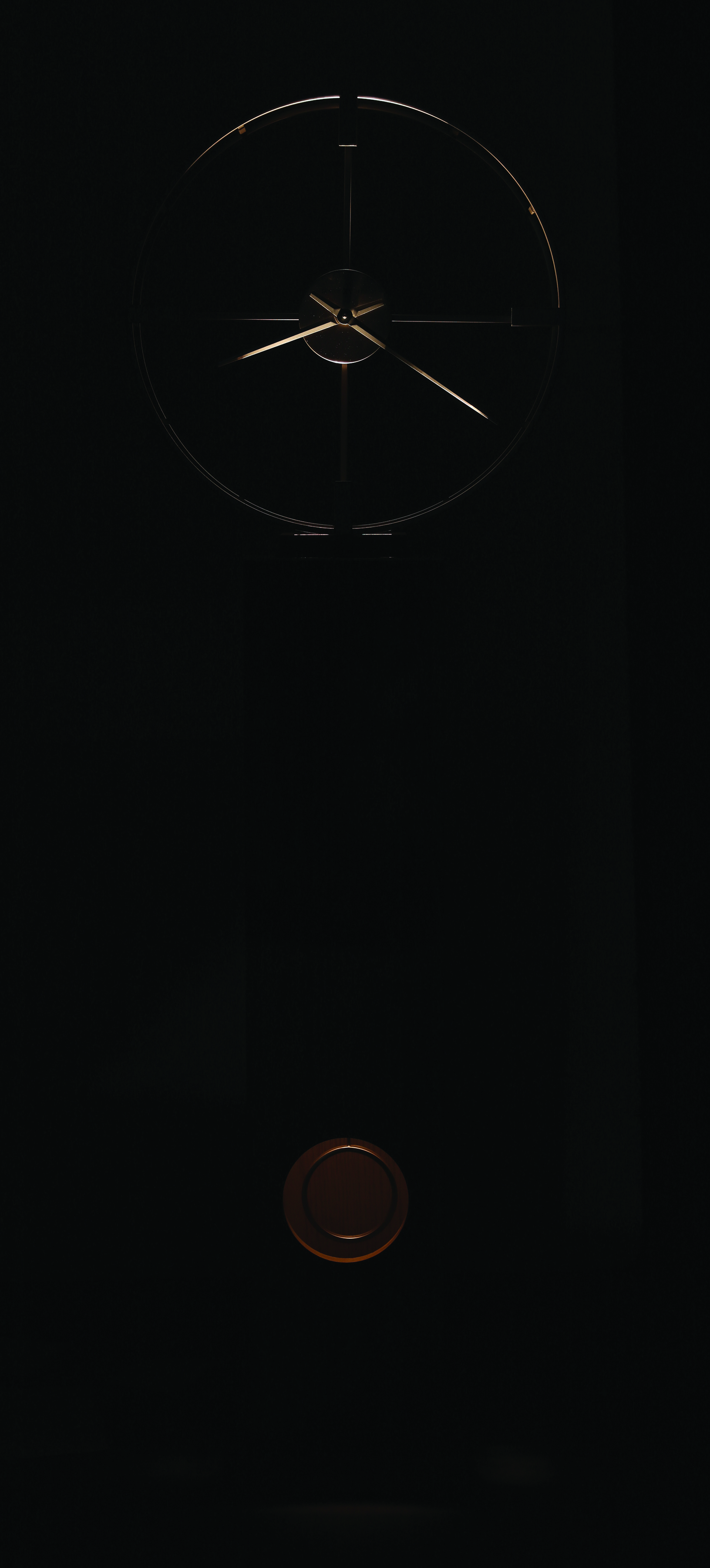 Stunning Dial Features: The gray Juno grandfather clock features a large 24-inch metal dial with suspended hour markers and hour and minute hands finished in satin nickel. Satin nickel-finished pendulum with a circular ring for the bob complements the dial, resulting in a unique design.