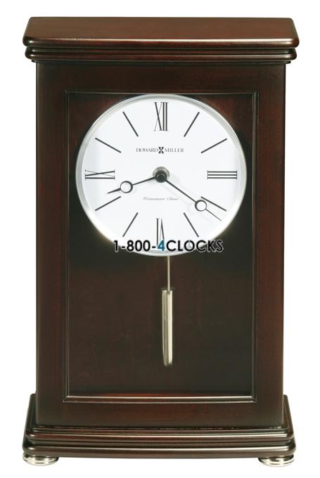 Careful Craftsmanship: Enjoy the detailed craftsmanship of this Howard Miller modern mantel clock. The mantel clock features an espresso finish on select solids and veneers with a slightly curved front, rounded corners, and polished nickel finished bun style feet.