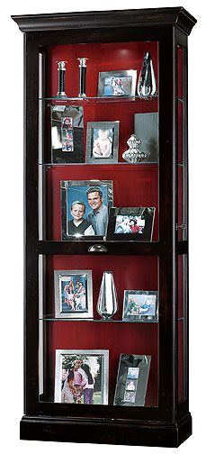 This painted display cabinet offers a unique design twist: a reversible back panel, which may easily be removed, and then reversed for a whole new look!