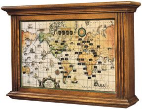 Watercolor style map with glass front is set in an Oak Yorkshire finished case on select hardwoods.