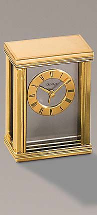 Solid brass table top clock with applied brass numeral ring, alarm function.Movement: QW quartz alarm movement.